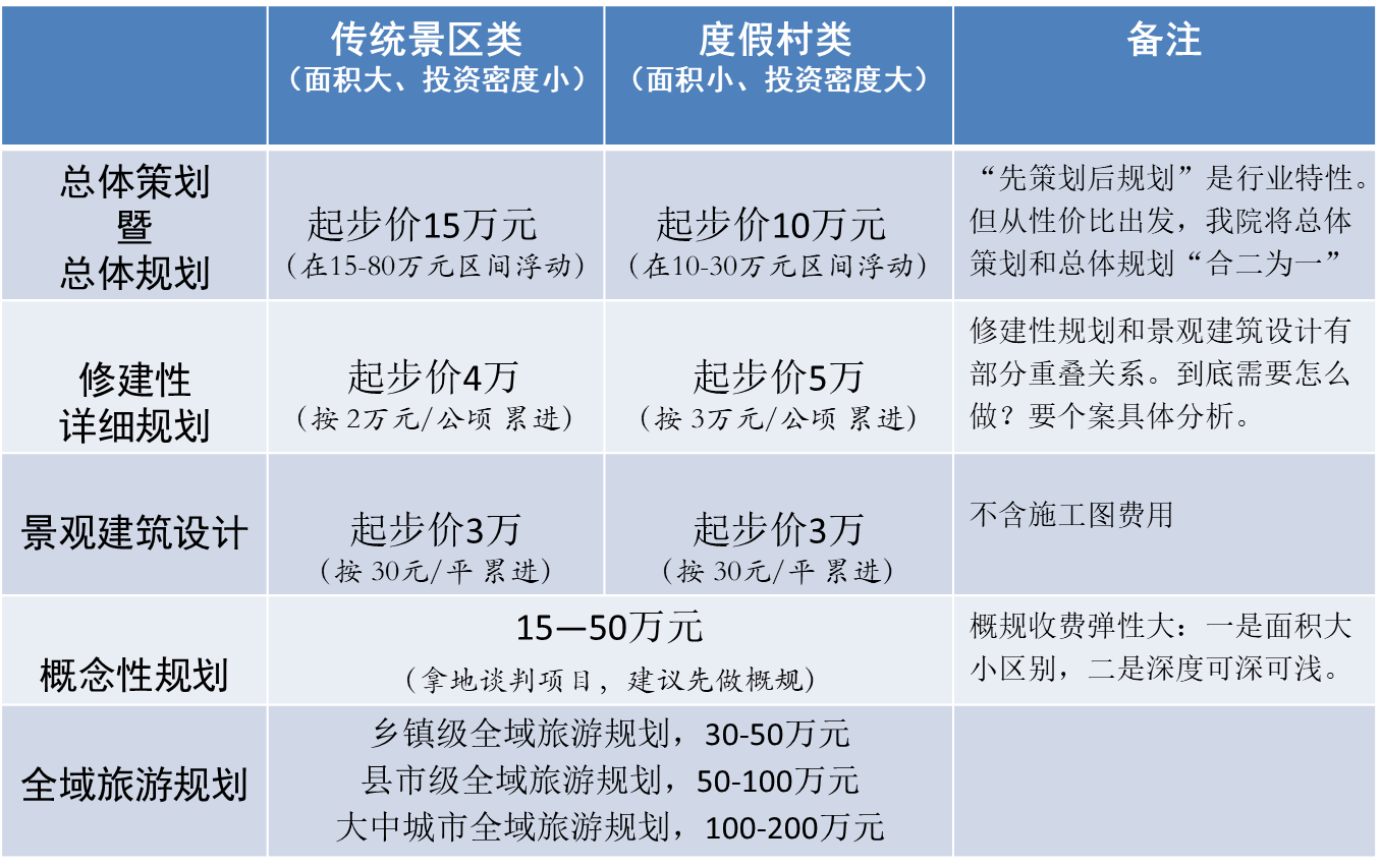 首先必須說明,旅游規劃收費并無所謂的“標準價格”,但很多客戶還是表示希望“知根知底”,所以至道規劃院就結合多年經驗及行業...